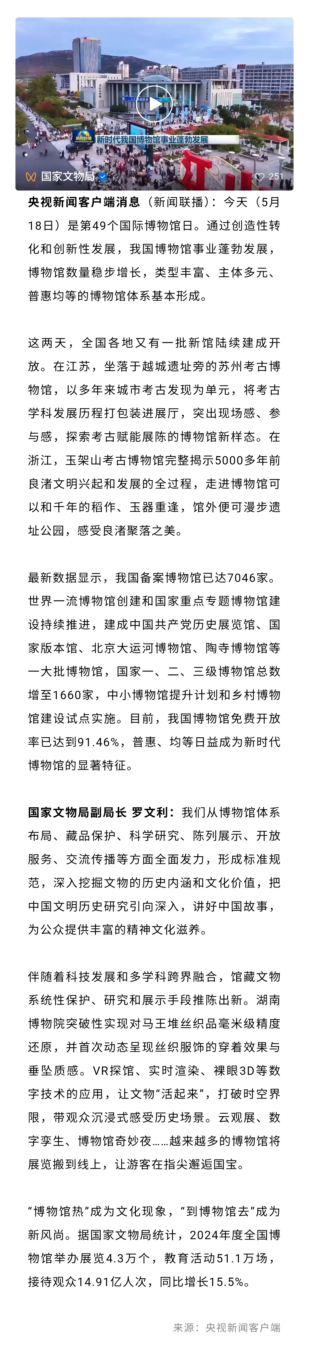 新闻联播丨新时代我国博物馆事业蓬勃发展
